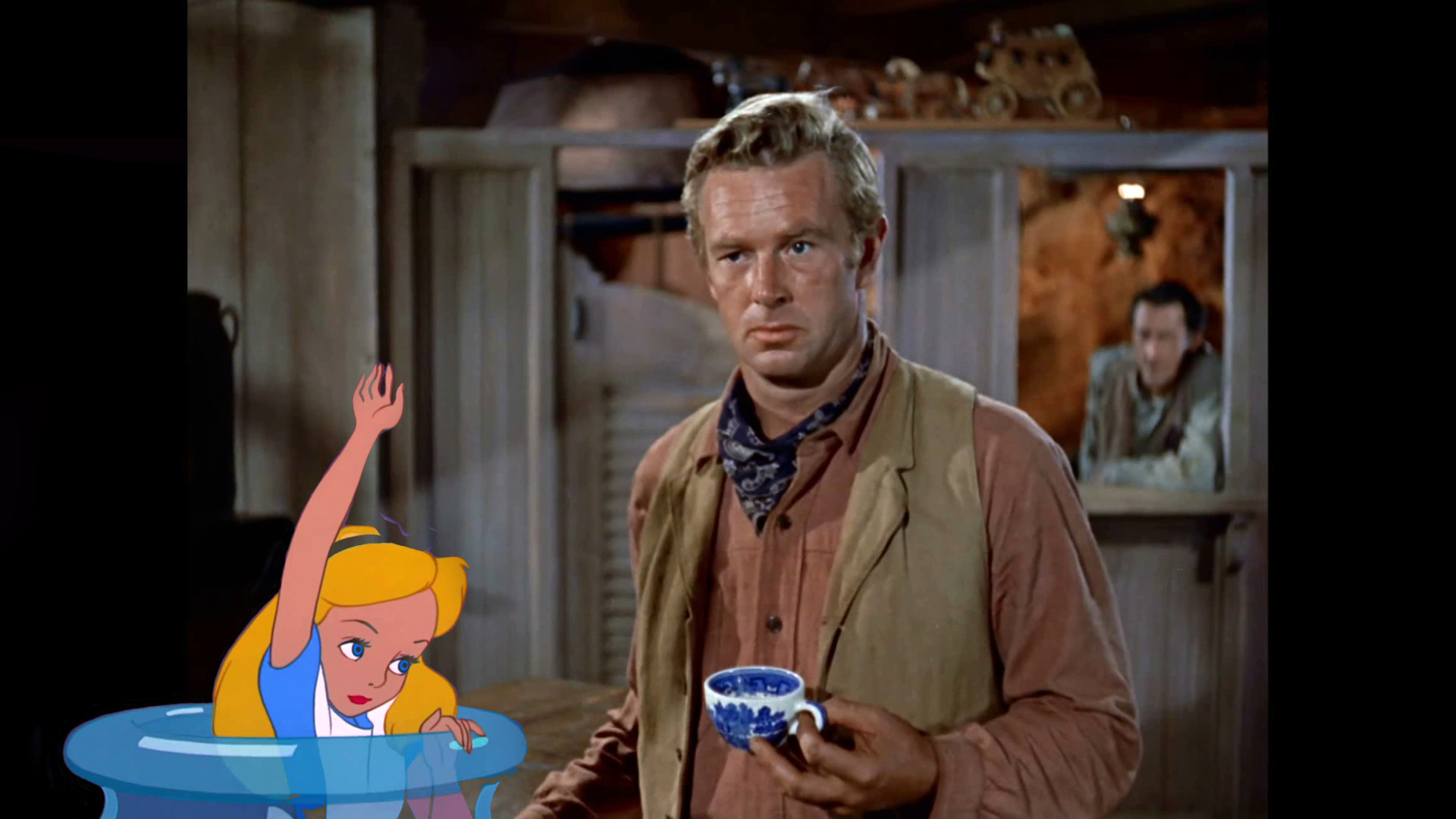 L’Alice échappée de l’animation des années cinquante rend visite au Far West et à l’action des années cinquante, cependant l’œil vigilant note qu’ils ne se rencontrent jamais dans le même champ. L’Alice originale et le Far West original étaient également contemporains.