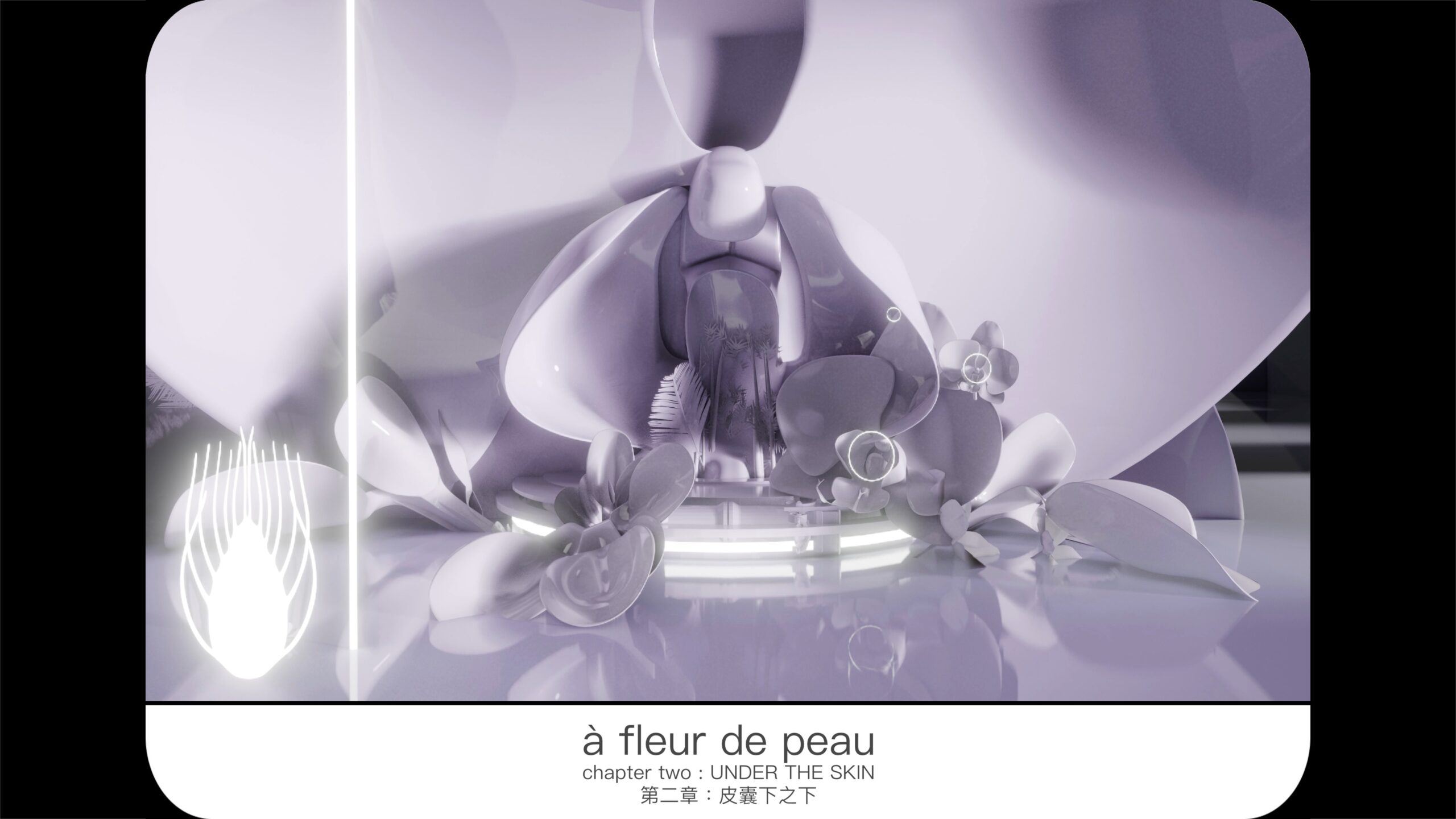 DEEP-SKIN – à fleur de peau choisit le genre de l’anticipation alors que deux figures engagés dans un dialogue en ligne ont la possibilité d’explorer un nouveau mode d’intimité où le toucher n’a plus de raison d’exister, mais où d’autres modes de relation existent grâce à une autre peau, plus à même de toucher émotionnellement et psychologiquement l’esprit humain : une sorte de peau encore plus tactile, connectée à des profondeurs émotionnelles nouvelles.