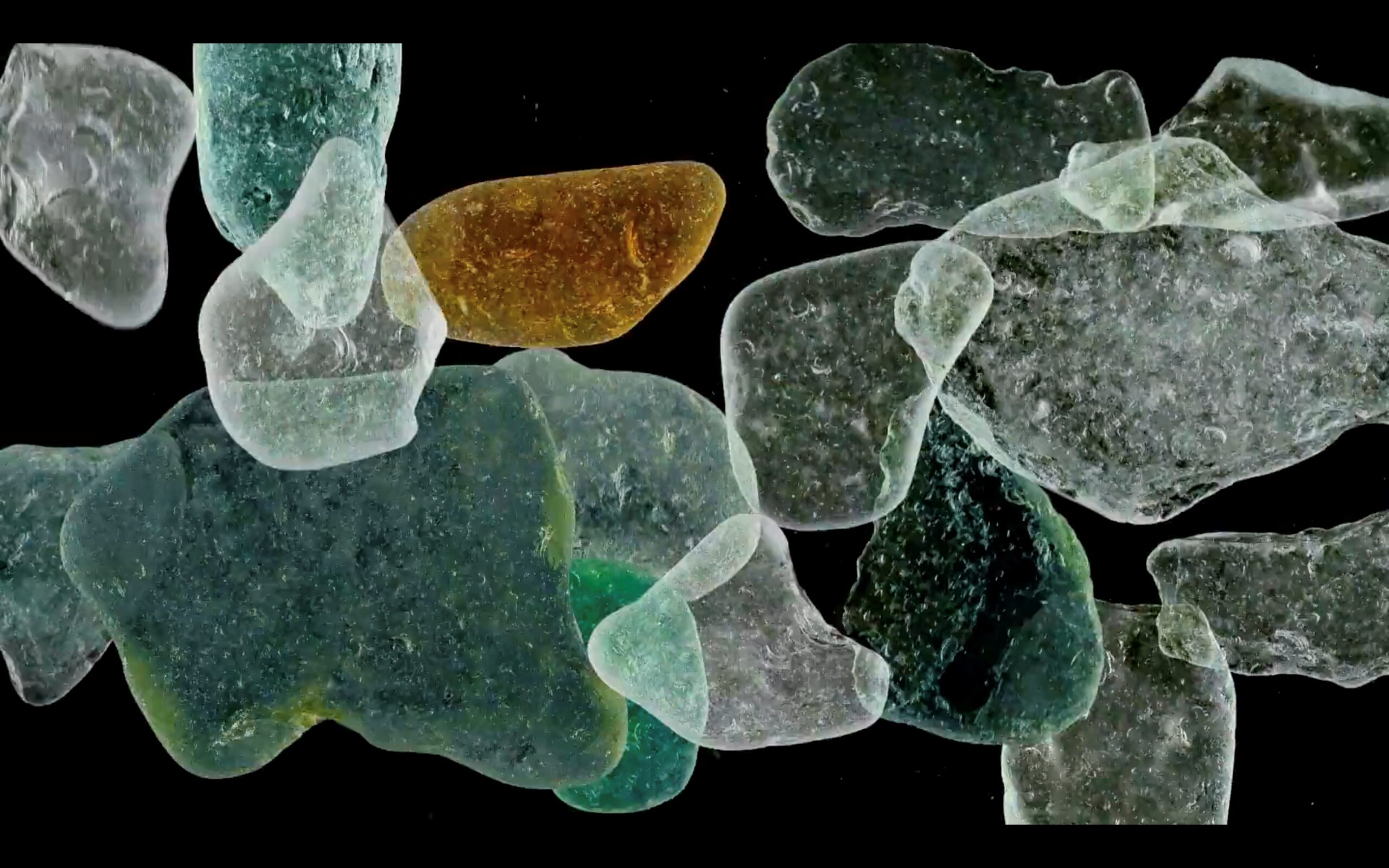 Et le ballet de galets de verre, eux seuls, animés en flicker pour un hypnotique voyage. Des séquences stop motion animent des morceaux de verre récoltés sur les rivages de la Méditerranée et qui ont été collectés dans une logique de « soin » des espaces naturels arpentés. Emblématique des forces de la nature qui nous dépassent et qui lentement transforment les traces que nous laissons derrière nous. Le titre renvoie à l’ouvrage éponyme de Marlene Haushofer, Murs invisibles qui décrit une Robinsonnade au féminin.