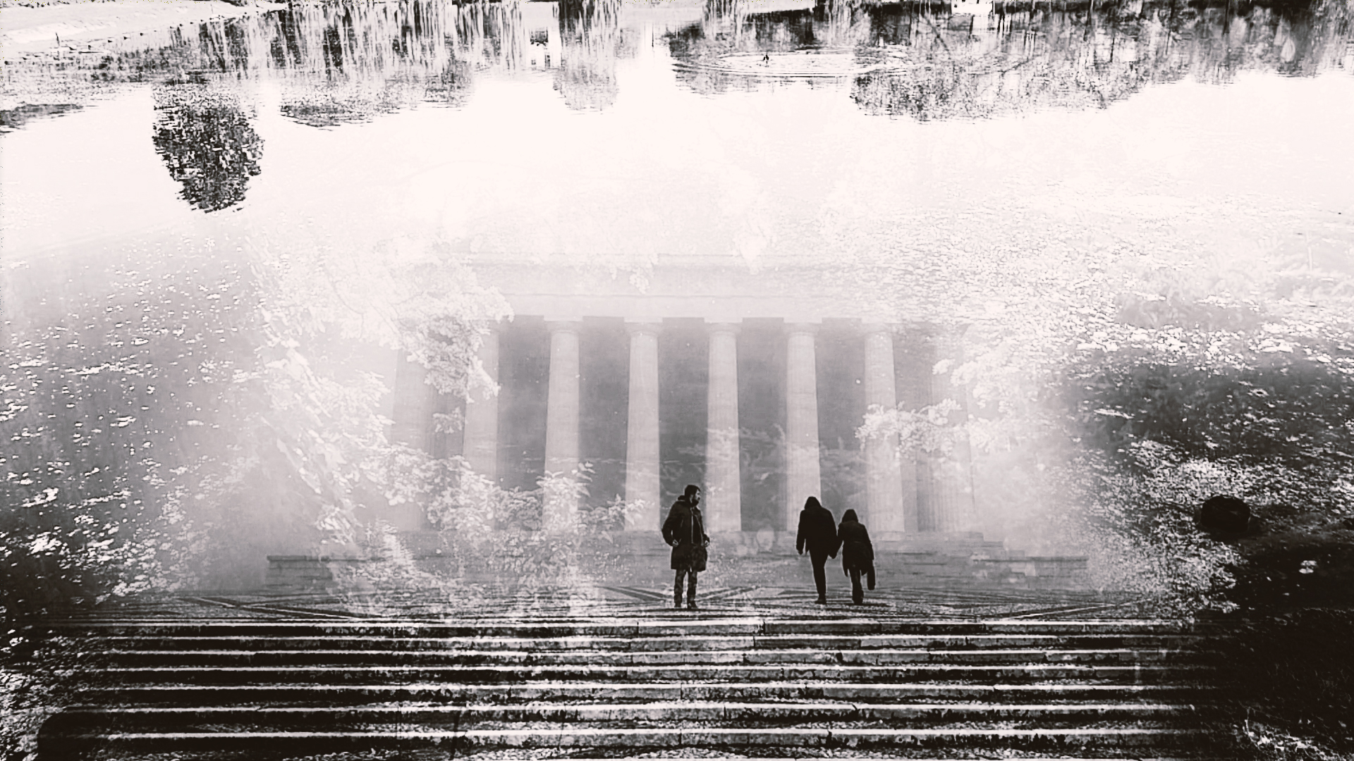 I see you is an audiovisual journey where poetry, music, and imagery merge into a contemplative fabric. The poetic voice evokes an inner sense of time, while layered visuals of monumental stairs, water, forests, and columns unfold in dissolving reflections. The work becomes a meditation on presence and memory, inviting the viewer to see beyond appearances, where vision turns into listening and each fragment reveals the density of time.
