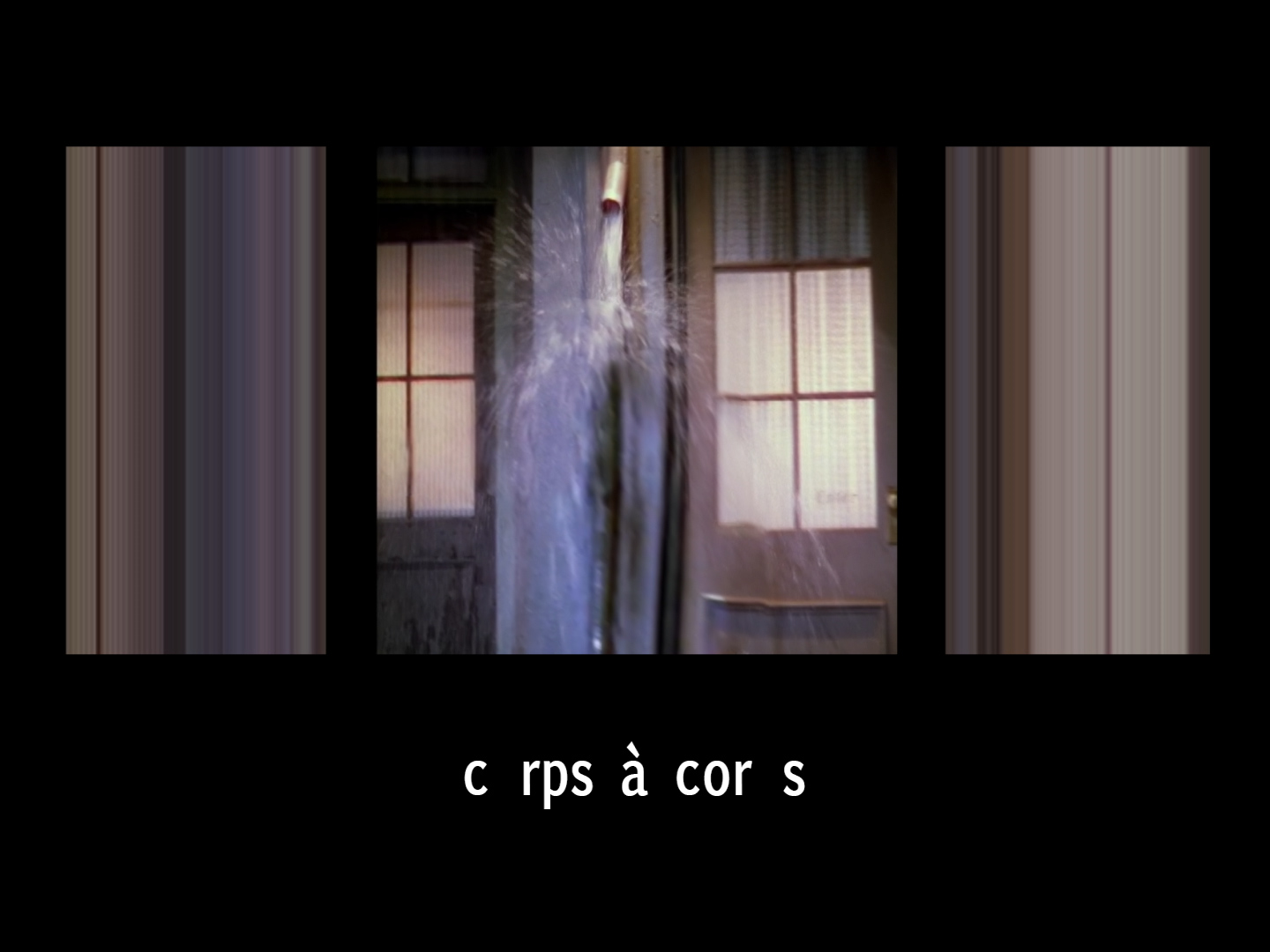Disparition s’approprie et détourne très particulièrement la séquence emblématique de Chantons sous la pluie, de 1952 de Stanley Donen où Gene Kelly prête son corps dansant et chante sous la pluie, obéissant au titre. De même, suivant l’impulsion de « disparition », le corps gracieux qui virevolte au gré des éléments, n’est plus visible. Seuls subsistent de nombreux artefacts numériques de cette présence et les ombres projetées autour d’elle. Ce périple inquiétant se double de lipogrammes en écho à cette tentative d’effacement…