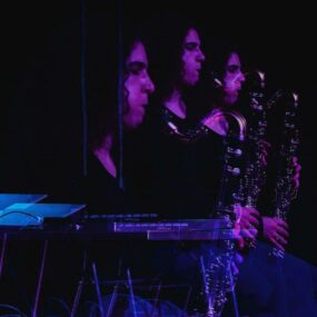 Les œuvres investissent des lieux chargés d’histoire par les formes les plus vives de l’expérimental. Au vernissage, musique immatérielle, images et films vivifient les murs, prélude aux installations intérieures. Bois vinicoles, sable, roches mais aussi corps performatifs et lumière, plans animés et métaphores inquiètes composent un monde traversé par l’érosion, la mémoire et les mythes. Des cubes irisés aux visages doubles, des bribes familiales aux nymphes slaves, les œuvres ouvrent des espaces de pensée en jaillissements colorés, accompagnés lors du vernissage d’un impromptu musical.