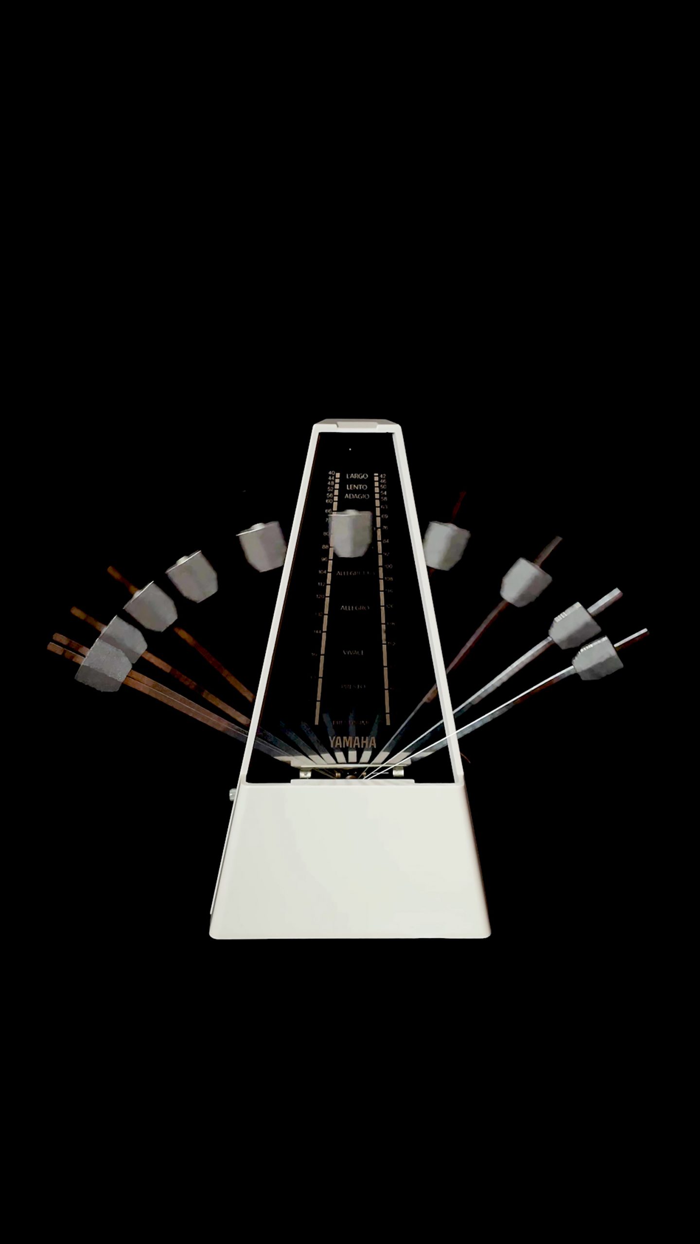 À partir d’échantillons d’images en mouvement provenant de métronomes de forme pyramidale, divers motifs visuels et schémas rythmiques sont explorés afin de mettre le son en scène. Cet hommage au compositeur György Ligeti s’inspire d’une pièce pour cent métronomes (de préférence de forme pyramidale), un chef d’orchestre et dix exécutants, intitulée Poème symphonique dont c’est le 60e anniversaire.