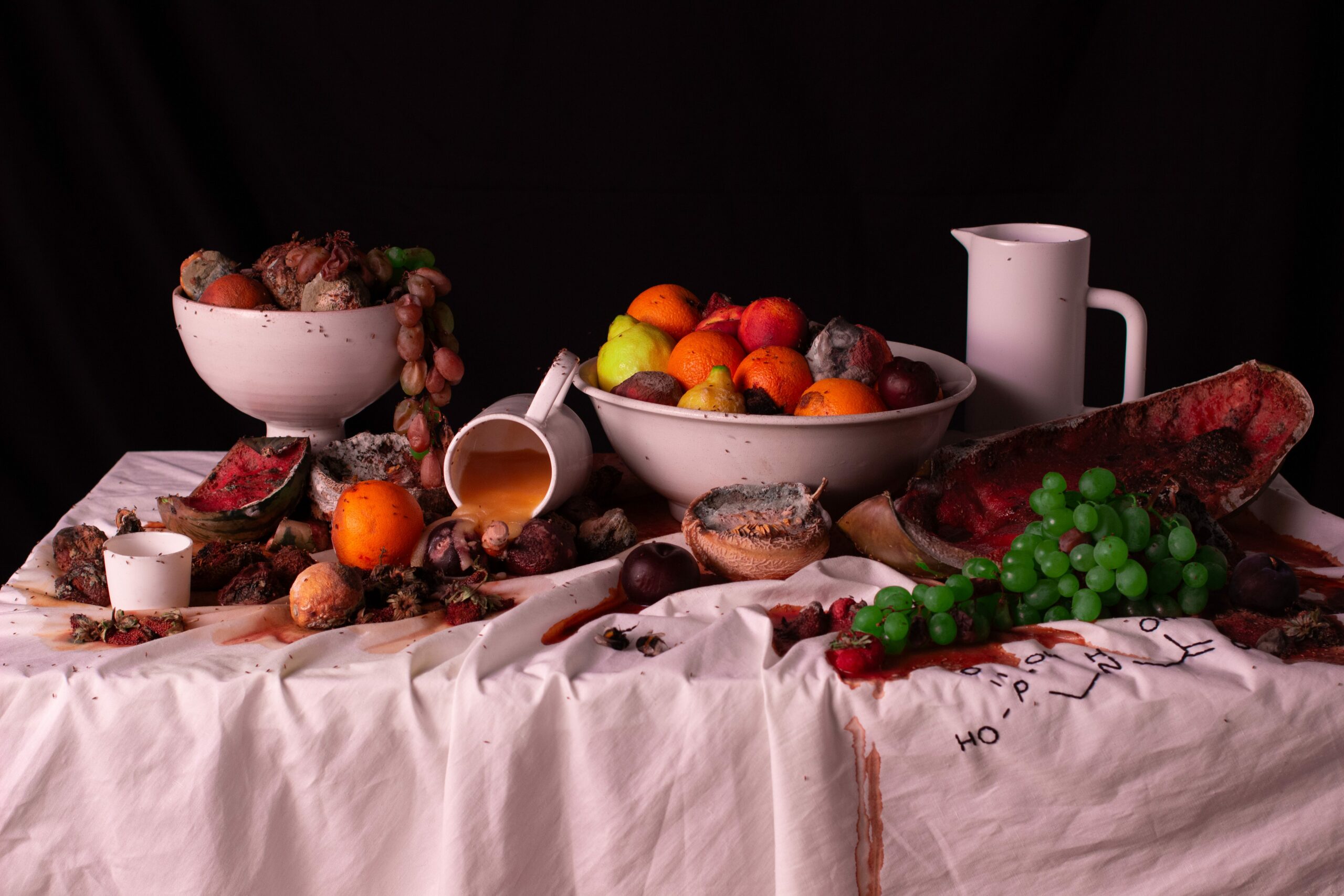 Notre indispensable rencontre avec ce lieu fait renaître l’émoi. La nature morte, en installation et film, mêle crânes et fruits contemporains : tomates et avocats s’éveillent si le visiteur s’en approche, il insuffle vie, l’eau brille, la musique baroque se déploie en performance sonore et en images mouvantes. D’autres compositions roulent ou éclatent en films et en sculptures interactives, la grenade ouverte éclabousse de jus et de gestes quotidiens. Un repas de foin, posé sur assiette, détourne nos usages, tandis que les gestes des chefs d’orchestre se captent en chorégraphie filmée. Du brisé naît la beauté, des déchets surgissent des lumières, et le processus lui-même devient œuvre. Et des performances ponctuent du corps en musique ou en écart difficile, la riche soirée.