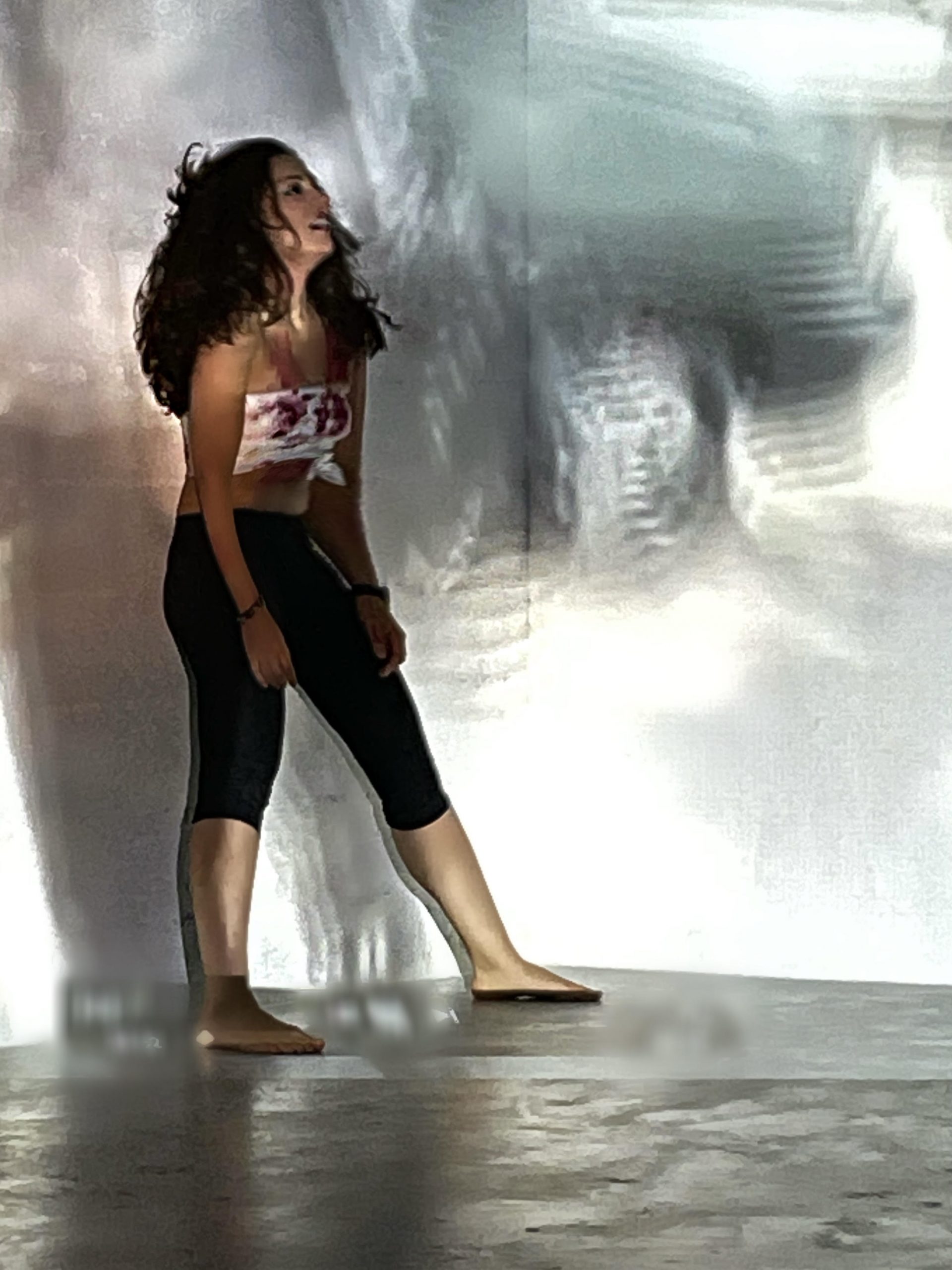 islamique d’Iran, lors de la révolution « femme, vie, liberté », du 17 septembre 2022 à aujourd’hui. L’œuvre inclut des images de civils arrêtés, emprisonnés, tués ou exécutés, qui réclamaient pacifiquement la fin du régime au cours des manifestations dans différentes villes d’Iran. Le son comprend leurs voix et leurs cris de même que les tirs et la violence insoutenable des autorités. Ainsi je prononce leurs noms que je demande au public de répéter, en même temps que j’allume des bougies que je place autour de moi sur le sol. Ce travail est une résistance à l’oubli de leur sacrifice.